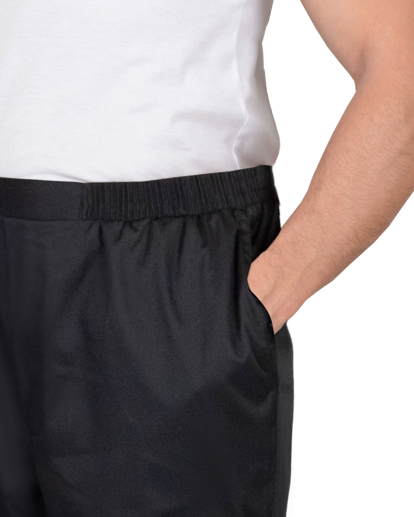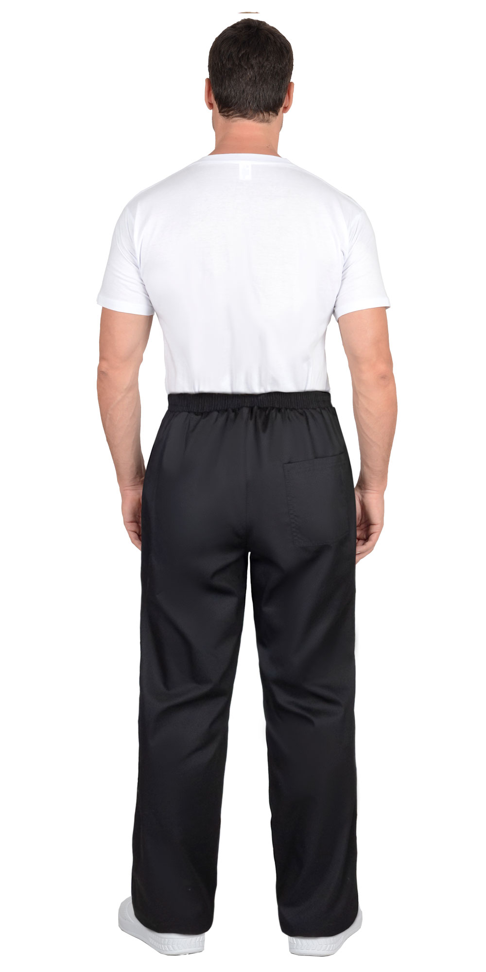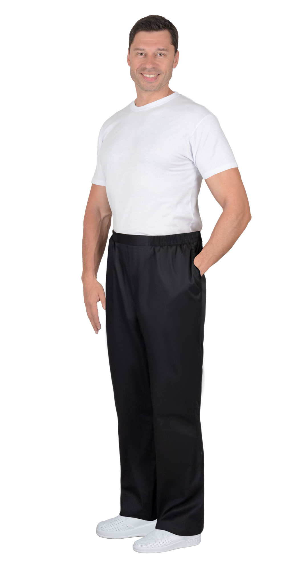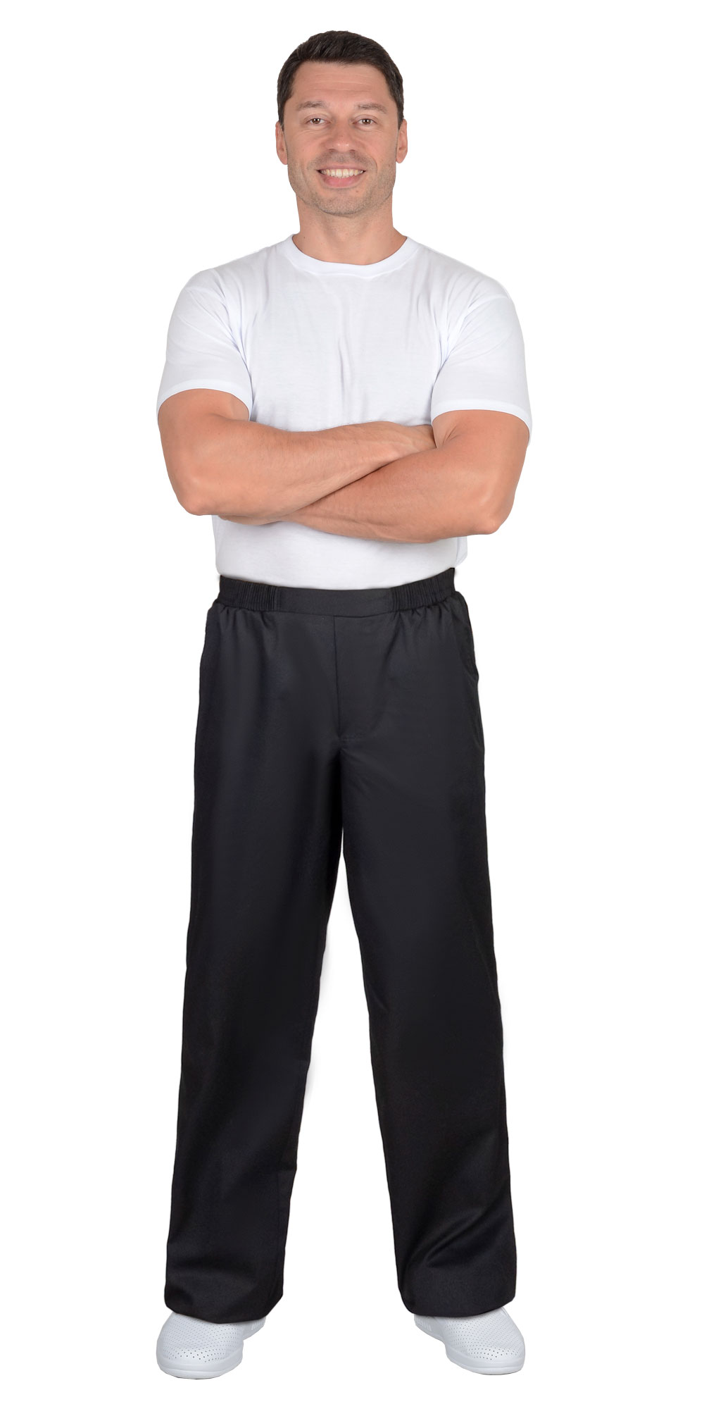 Брюки прямого покроя с ложным гульфиком. Пояс на резинке. Два боковых и один задний карман.