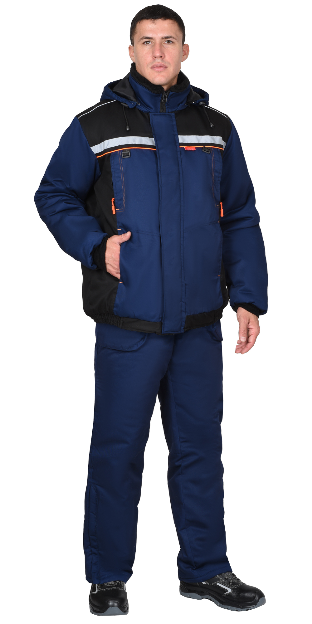 Костюм СИРИУС-ПРАКТИК зимний, куртка, брюки, меховой воротник, синий с черным и СОП