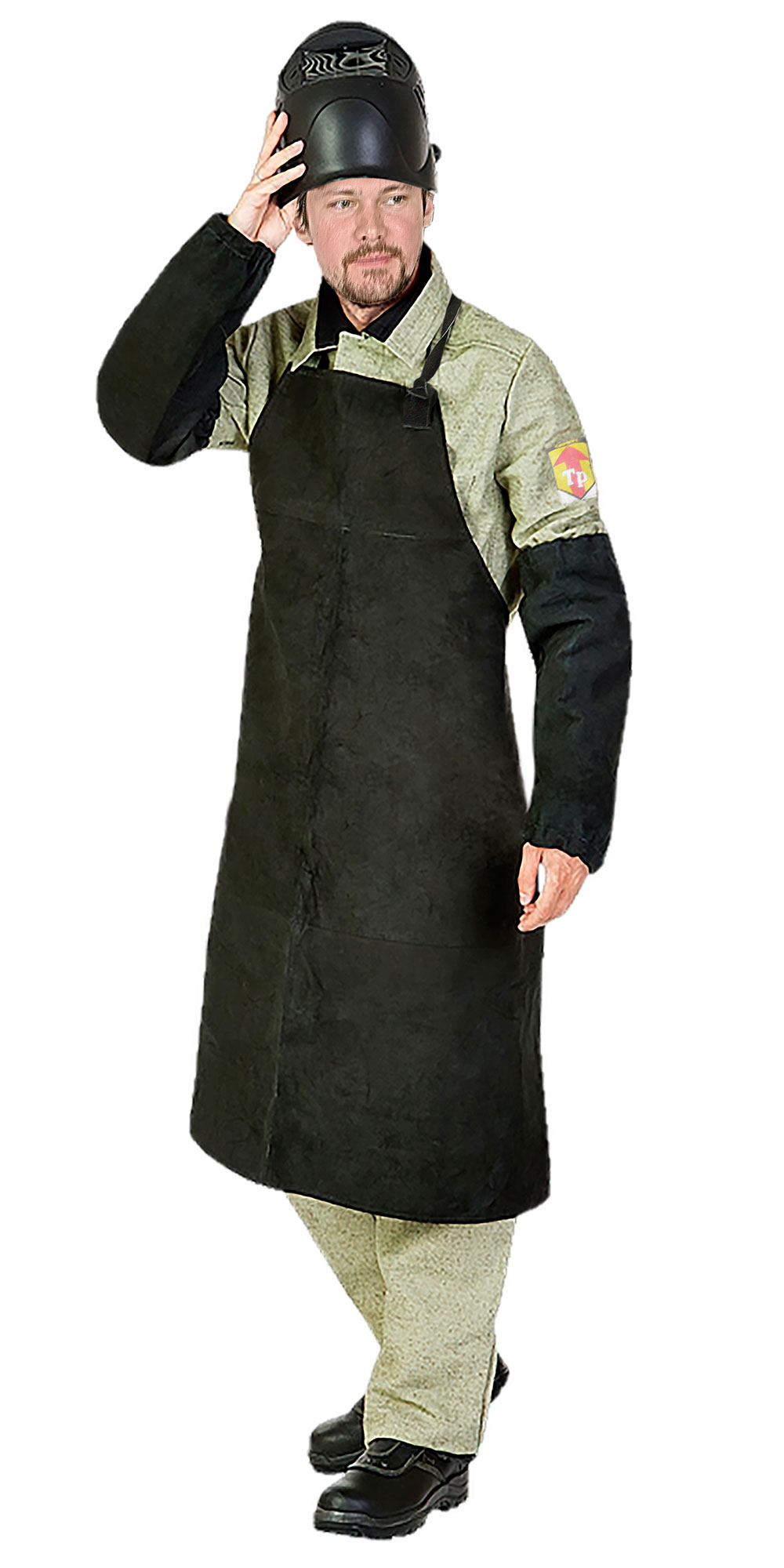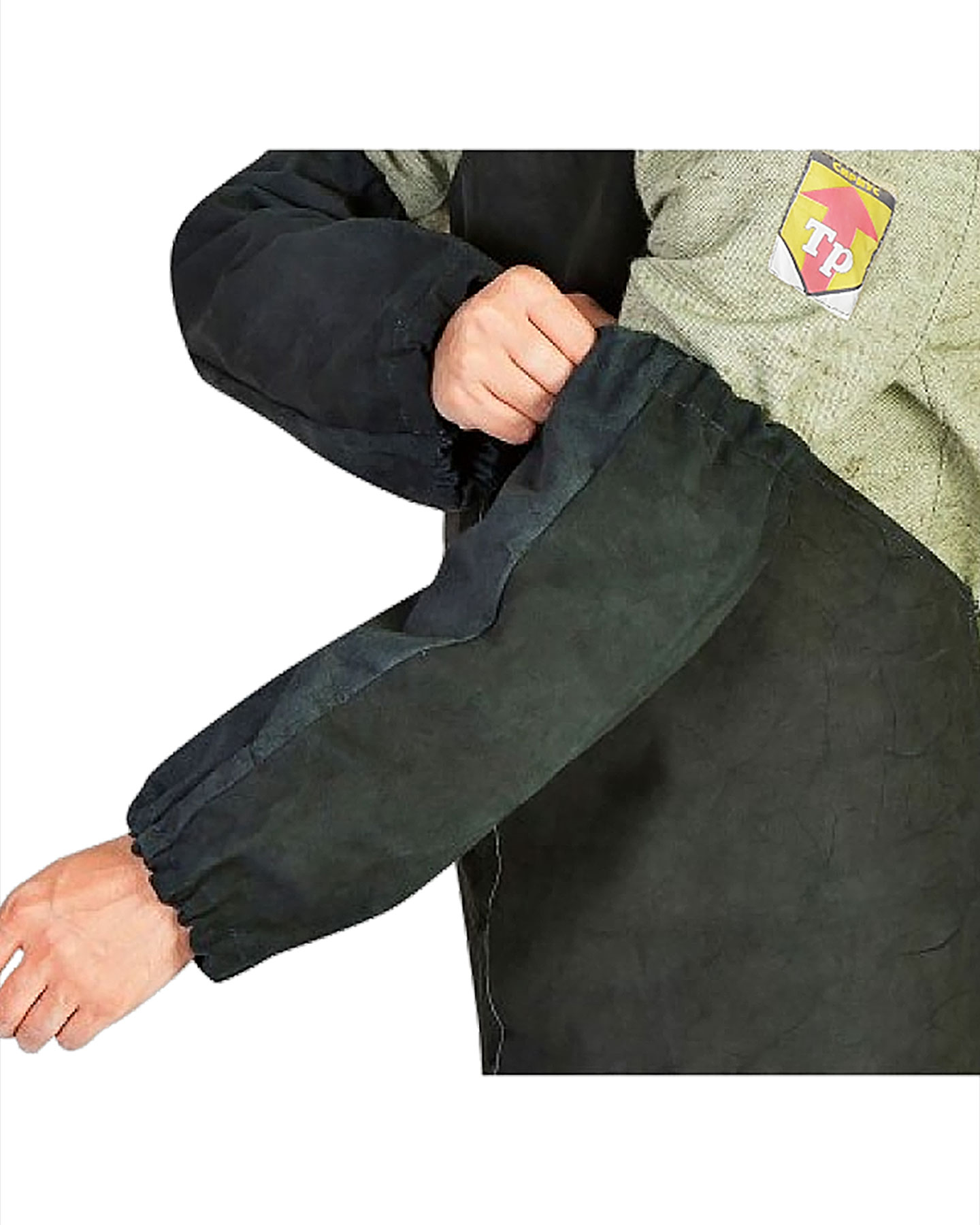 Нарукавники спилковые трехшовные. По концам нарукавники стянуты на резинку.