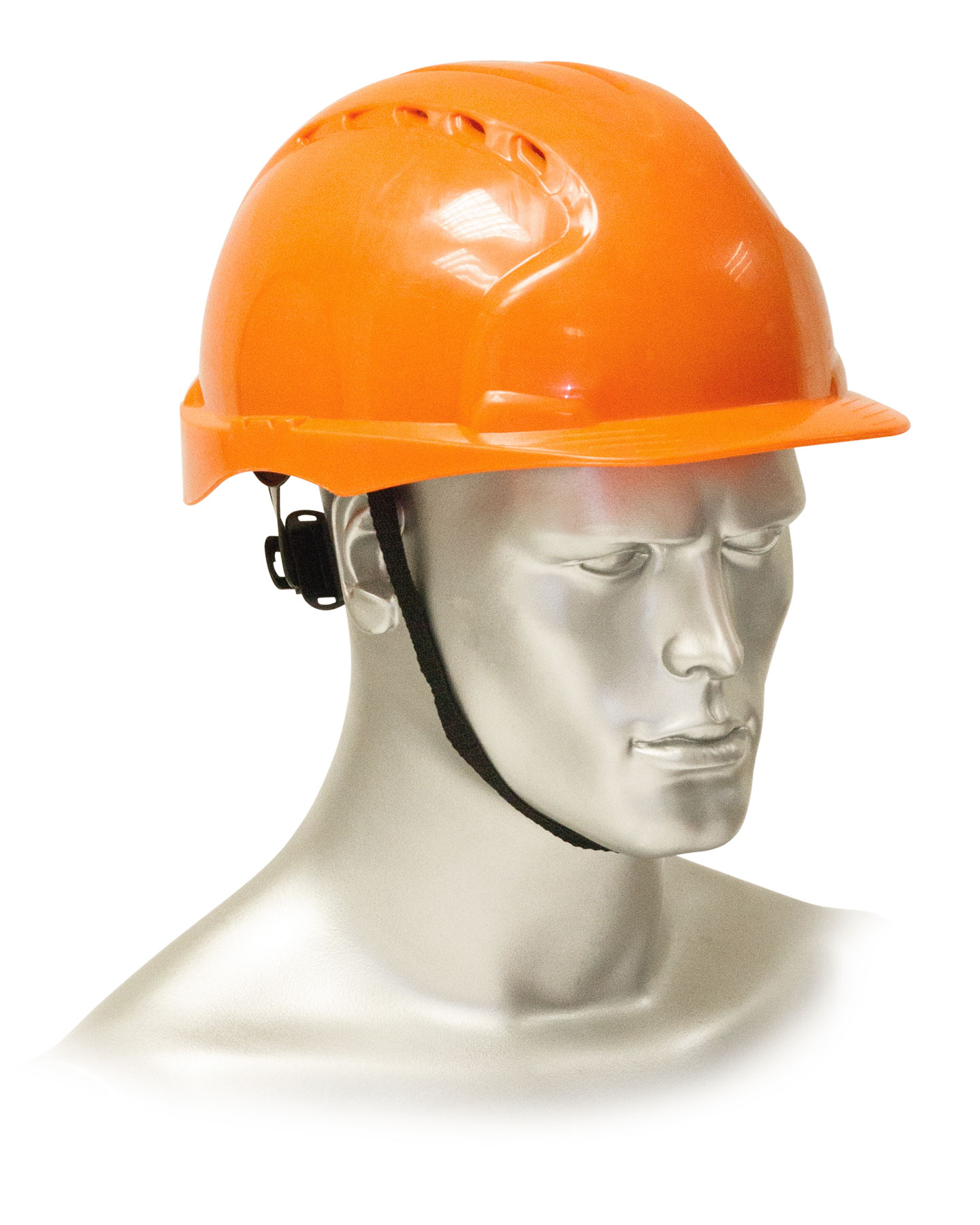 Каска выполнена из ударопрочного полипропилена, с удобным храповиком, регулирующим размер, а также с регулируемой глубиной посадки каски (3 положения). Корпус каски и внутренняя оснастка изготавливается из нетоксичных материала и устойчив к действию дезинфицирующих средств.