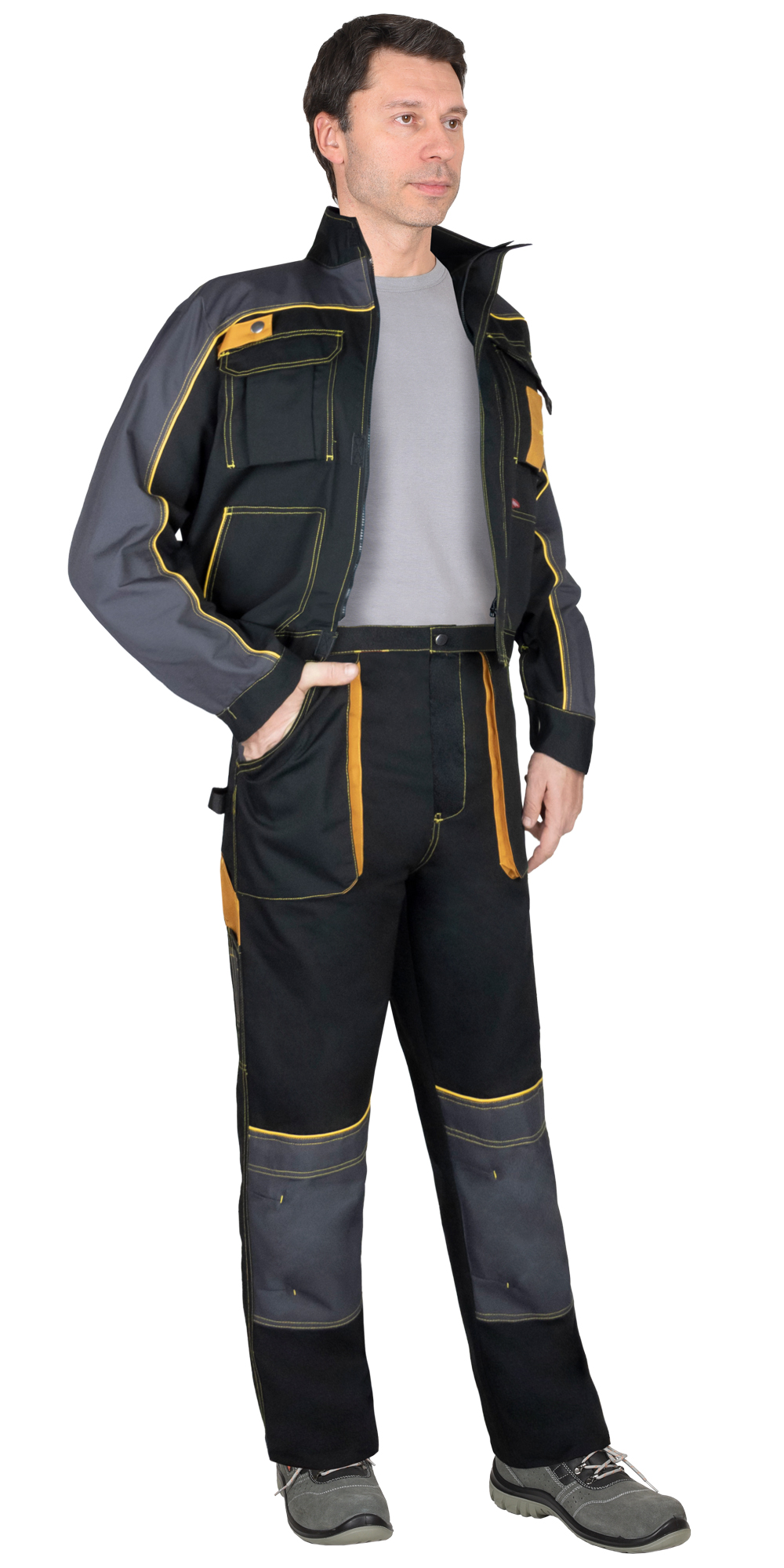 Костюм СИРИУС-АГАТ куртка, брюки, черный с темно-серым