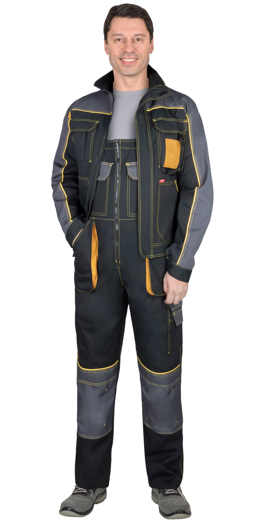 Костюм СИРИУС-АГАТ куртка, полукомбинезон, черный с темно-серым