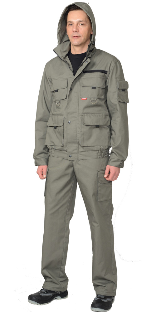Куртка короткая, прямого силуэта, с центральной застёжкой на молнию накрытой ветрозащитным клапаном, воротник стойка, пристёгивающимся капюшоном, различными многофункциональными накладными карманами с клапанами. Рукава с манжетами и патой регулирующий ширину. Низ куртки с притачным поясом стянутым, частично, резинкой.Брюки прямые с притачным поясом стянутым, частично резинкой и застёгивающимся на пуговицу, со шлёвками, застёжкой гульфика на молнию, с различными функциональными карманами. Низ брюк регулируется эластичным шнуром.Ткань: «Родос» 65% п/э, 35 % х/б, пл. 240 г/м.ГОСТ 12.4.280-2014