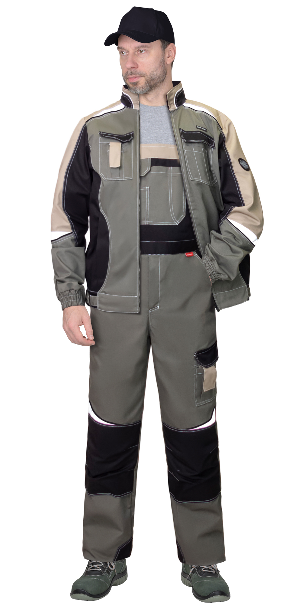 Костюм СИРИУС-КАСПИЙ куртка, полукомбинезон, оливковый с черным и песочным, СОП