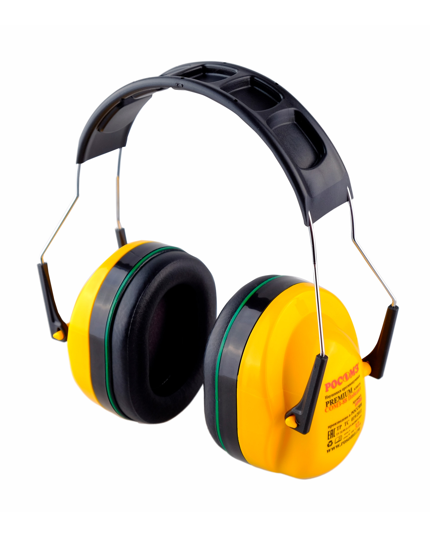 Защита до 112дБ (SNR=32дБ). Регулируемое стальное оголовье «анатомической» формы, залитое мягким материалом, крепящееся к чашкам в 2-х точках.