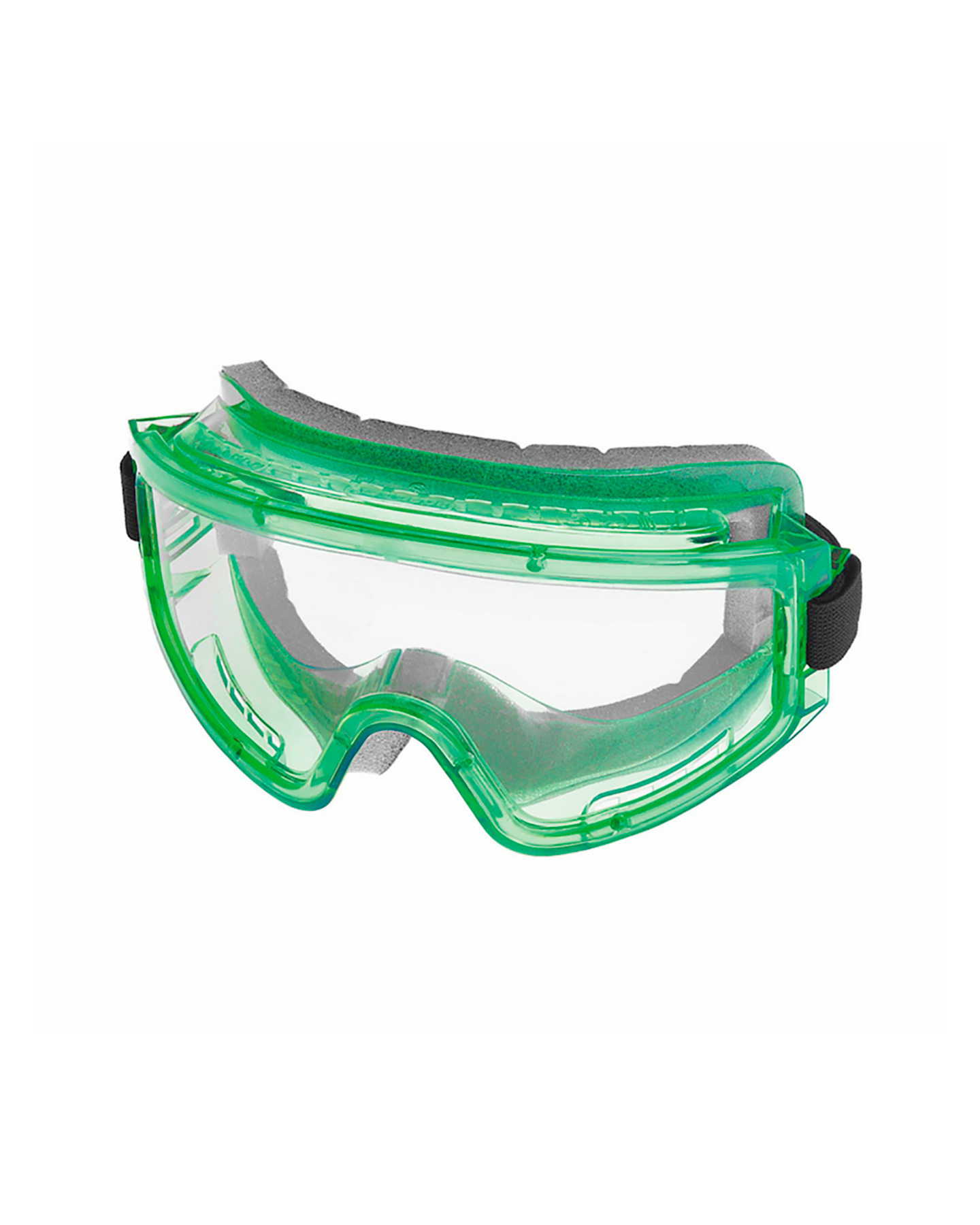 Очки с непрямой вентиляцией с панорамным защитным бесцветным стеклом из ударопрочного поликарбоната.