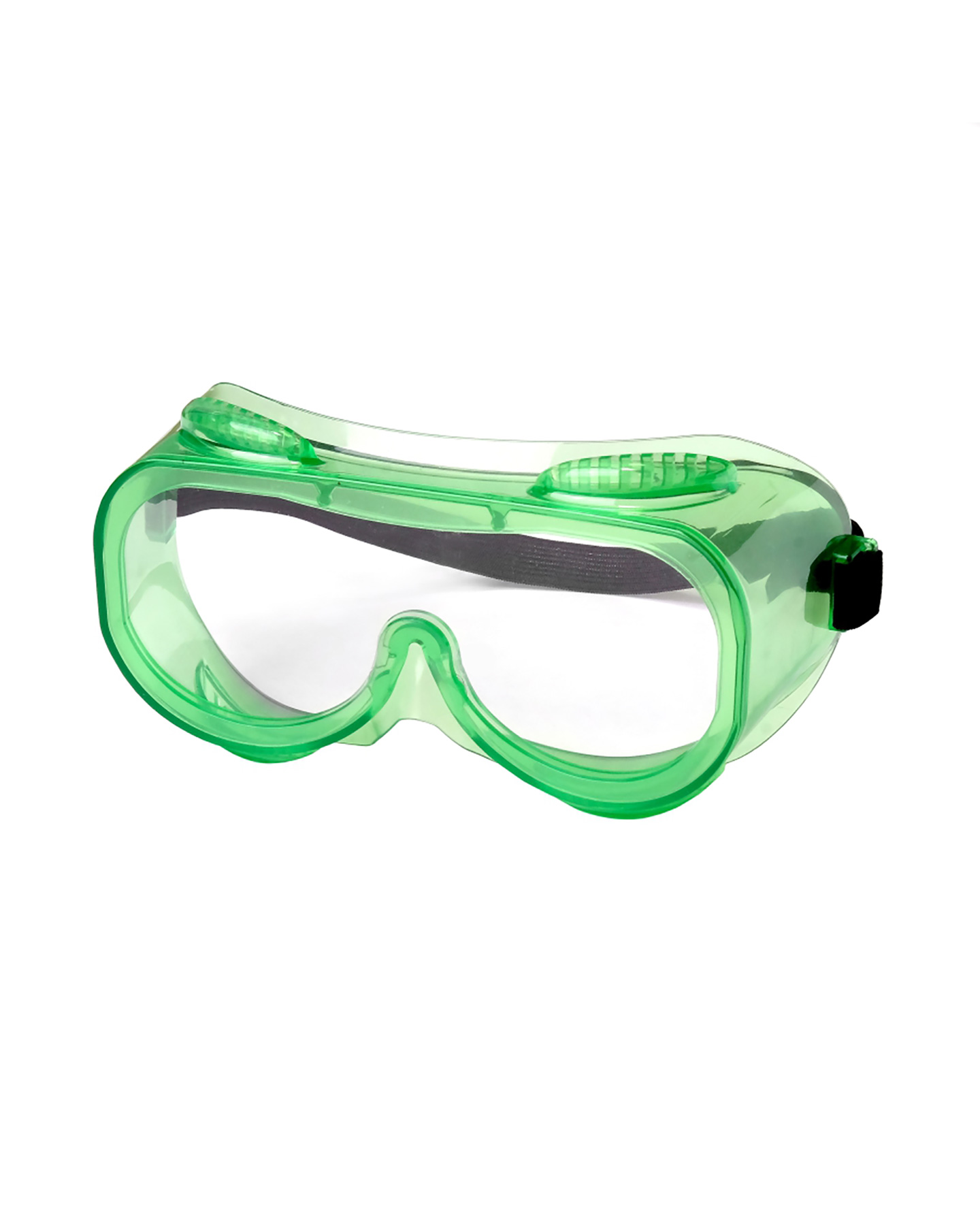 Лёгкие очки с непрямой вентиляцией в мягком корпусе из ПВХ и регулируемой наголовной лентой с защитным стеклом из бесцветного поликарбоната.