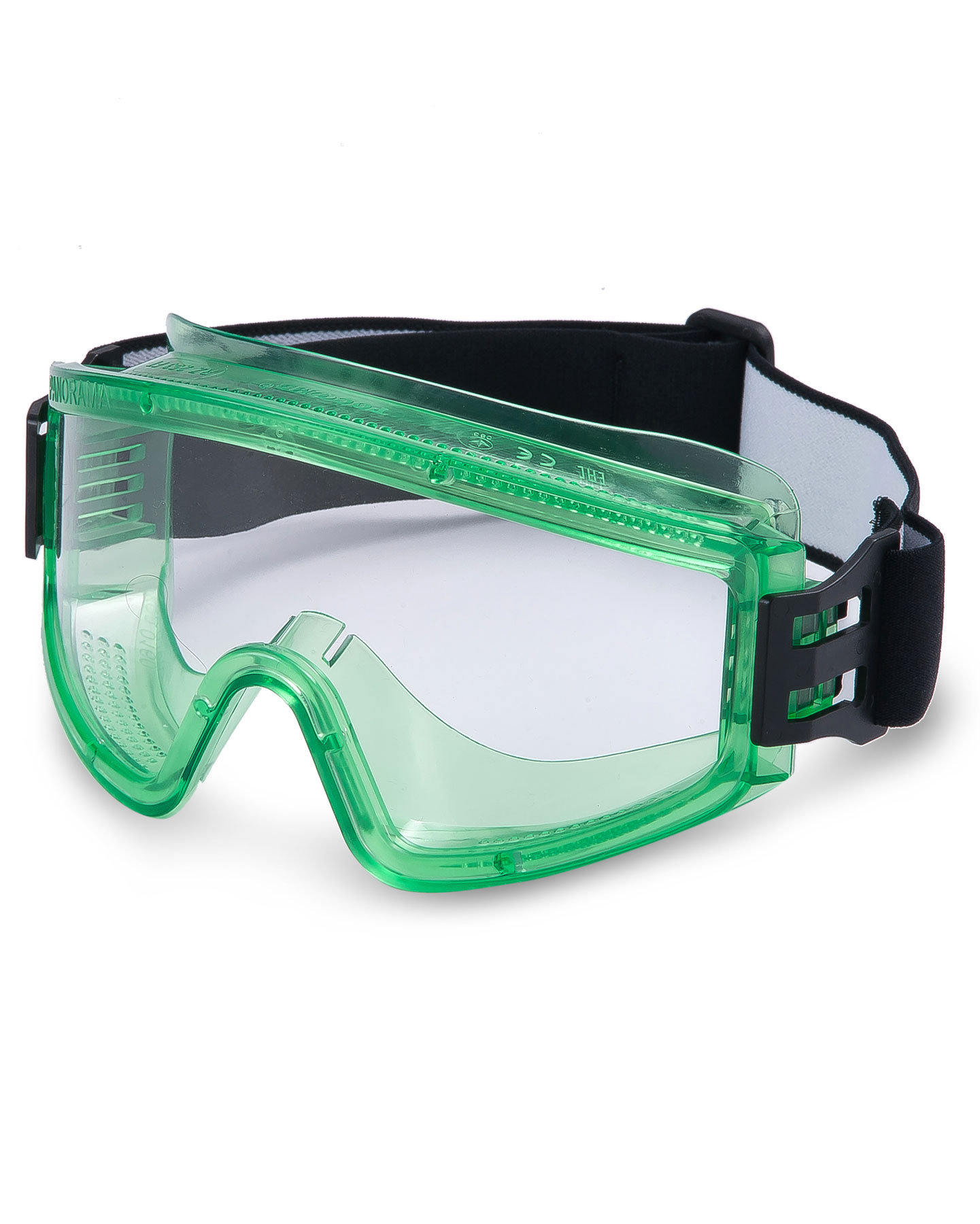 Обеспечивают защиту глаз от абразива, капель жидкостей (в т.ч. химических растворов), УФ-излучения, от механического повреждения высокоскоростными летящими частицами (кроме мелких частиц и пыли) спереди, с боков и сверху.