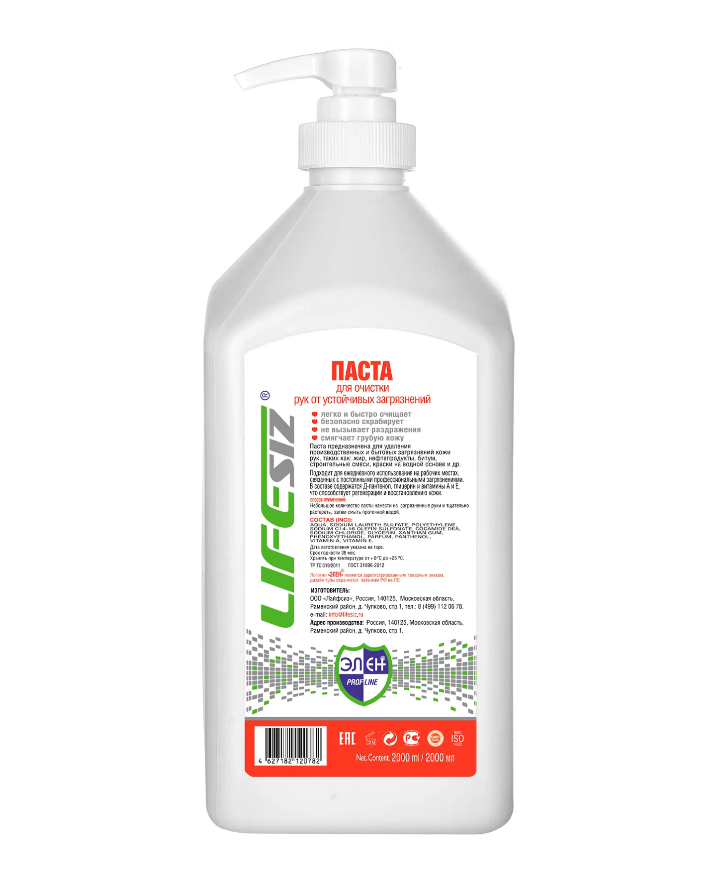 Паста для мытья и очистки сильнозагрязненных рук "Элен" быстро и качественно очистит кожу рук от различного рода загрязнений с помощью новой специальной формулы, включающей сбалансированное количество передовых поверхностно-активных веществ (ПАВ) и древесной муки - мягкого абразива растительного происхождения. (Сейчас в основном в такого рода пастах применяют полимерные абразивные гранулы). Очищающая паста "Элен" не содержит в своем составе острых и твердых абразивных гранул и имеет приятный свежий аромат. Средство для очистки рук от сильных загрязнений полностью распадается естественным путем и не вызывает раздражение на коже.