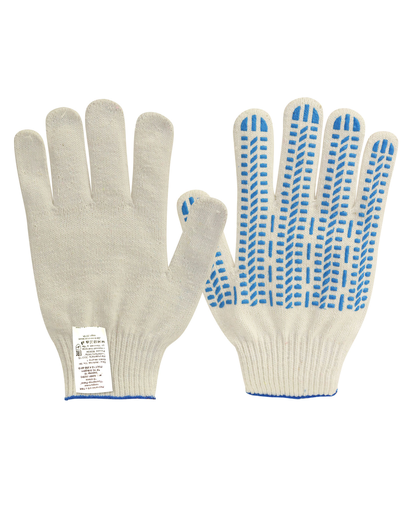 изготовлены из хлопка с добавлением п/э, а точечки на контактной поверхности из специального полимерного материала. Покрытие из ПВХ позволяет крепко удерживать в руках скользящие материалы, структура покрытия не позволяет предмету вылететь или выскользнуть из руки. .