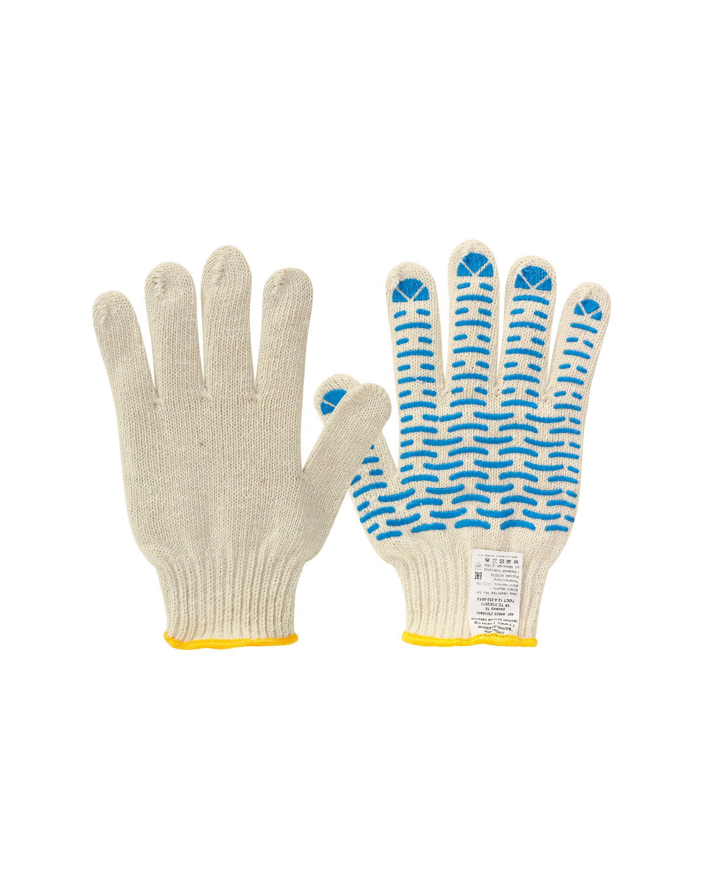изготовлены из хлопка с добавлением п/э, а точечки на контактной поверхности из специального полимерного материала. Покрытие из ПВХ позволяет крепко удерживать в руках скользящие материалы, структура покрытия не позволяет предмету вылететь или выскользнуть из руки. .