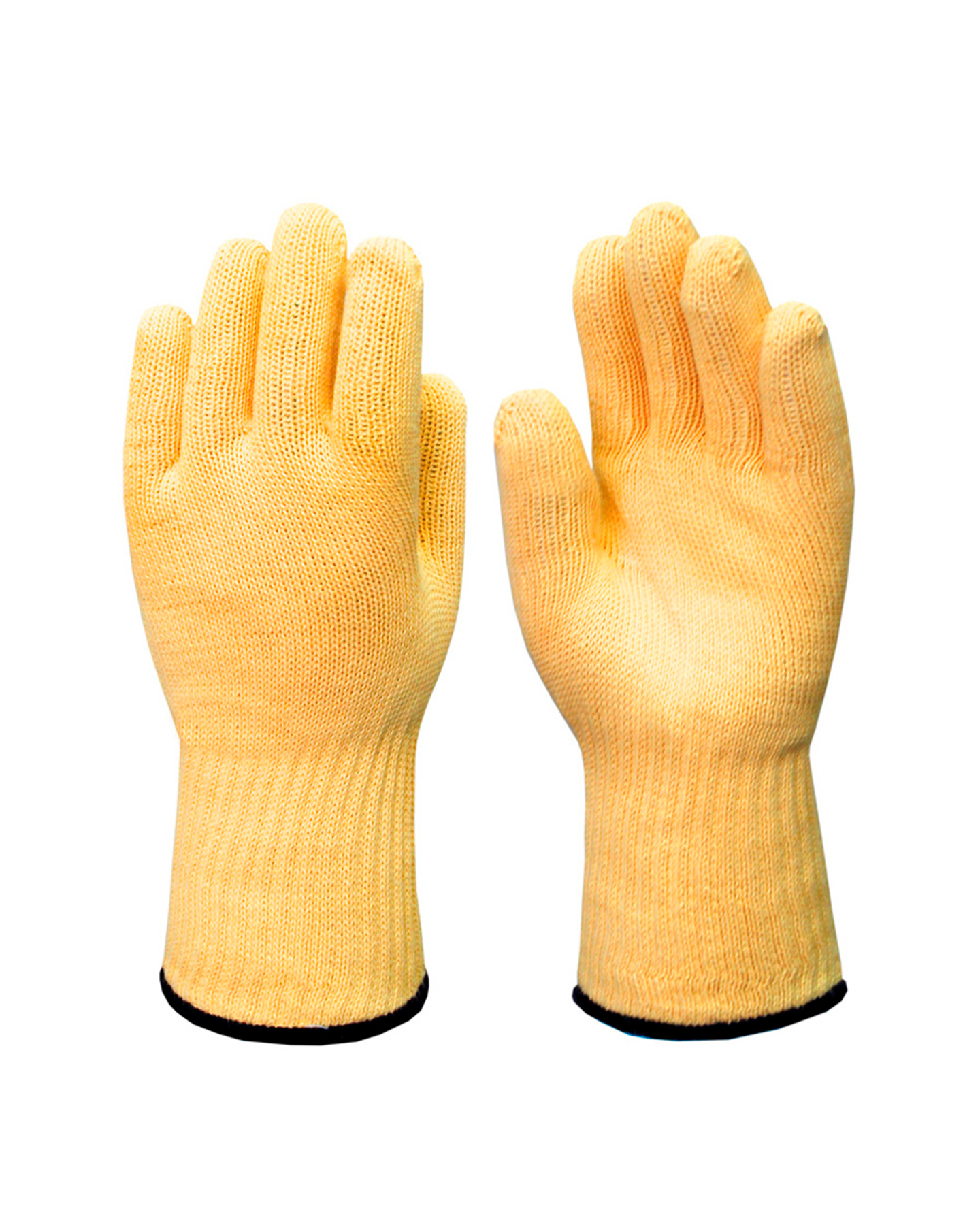 Перчатки АРАМАКС ТЕРМО (KVC-39) обеспечивают контакт с нагретой поверхностью с сохранением самого высокого уровня защиты от порезов. Бесшовная двухслойная основа для защиты от механических воздействий, открытого пламени, контактного тепла, искр и брызг расплавленного металла. Верх выполнен из волокна Kevlar® с плотностью вязки 7 петель на дюйм. Защита от контактного тепла до 350 °С. Не поддерживает горение и не плавится (t разложения 430-480 °С). Основа из хлопка с плотностью вязки 7 петель на дюйм для комфортной теплоизоляции в условиях повышенных температур, а также для абсорбирования влаги и смягчения ударных нагрузок. Удлиненный манжет для защиты части предплечья от попадания искр. Двойной оверлок с цветовой индикацией размера.