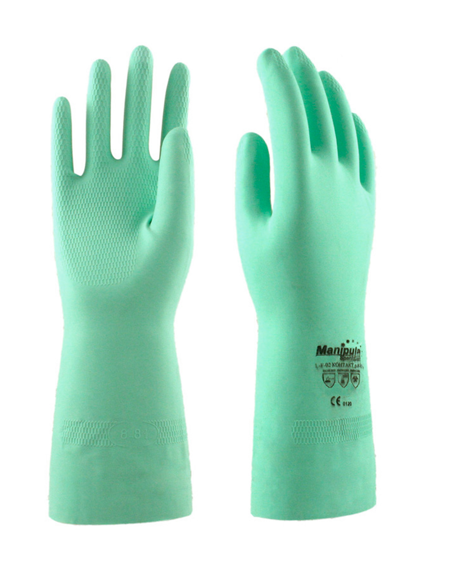 Перчатки КОНТАКТ (L-F-02) – латексные герметичные перчатки, стойкие к кислотам и щелочам повышенных концентраций, органическим растворителям и спиртам, растительным жирам. Выполнено хлорирование поверхности для увеличения механической прочности и снижения аллергических реакций на латексные протеины. Текстура рабочей поверхности «соты» обеспечивает отличный сухой и влажный захват. Хлопковое напыление на внутренней поверхности для удобства надевания и использования. Перчатки КОНТАКТ допущены к контакту с пищевыми продуктами. Для предотвращения возникновения микробной среды и устранения неприятных запахов после производственного процесса перчатка прошла антибактериальную обработку Sanitized Actifresh®.