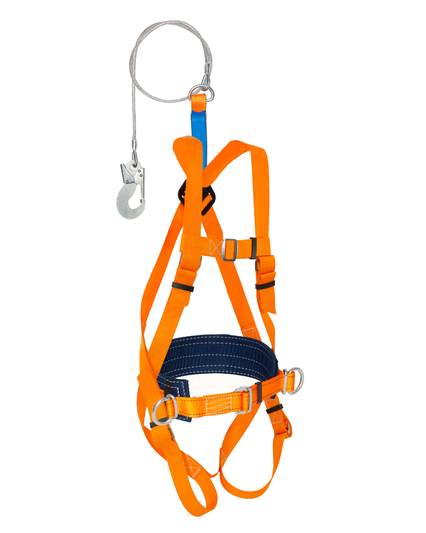 УС 2 аБЖ - Страховочная система с наплечными и набедренными лямками со стропом из металлического троса в ПВХ оболочке с амортизатором.