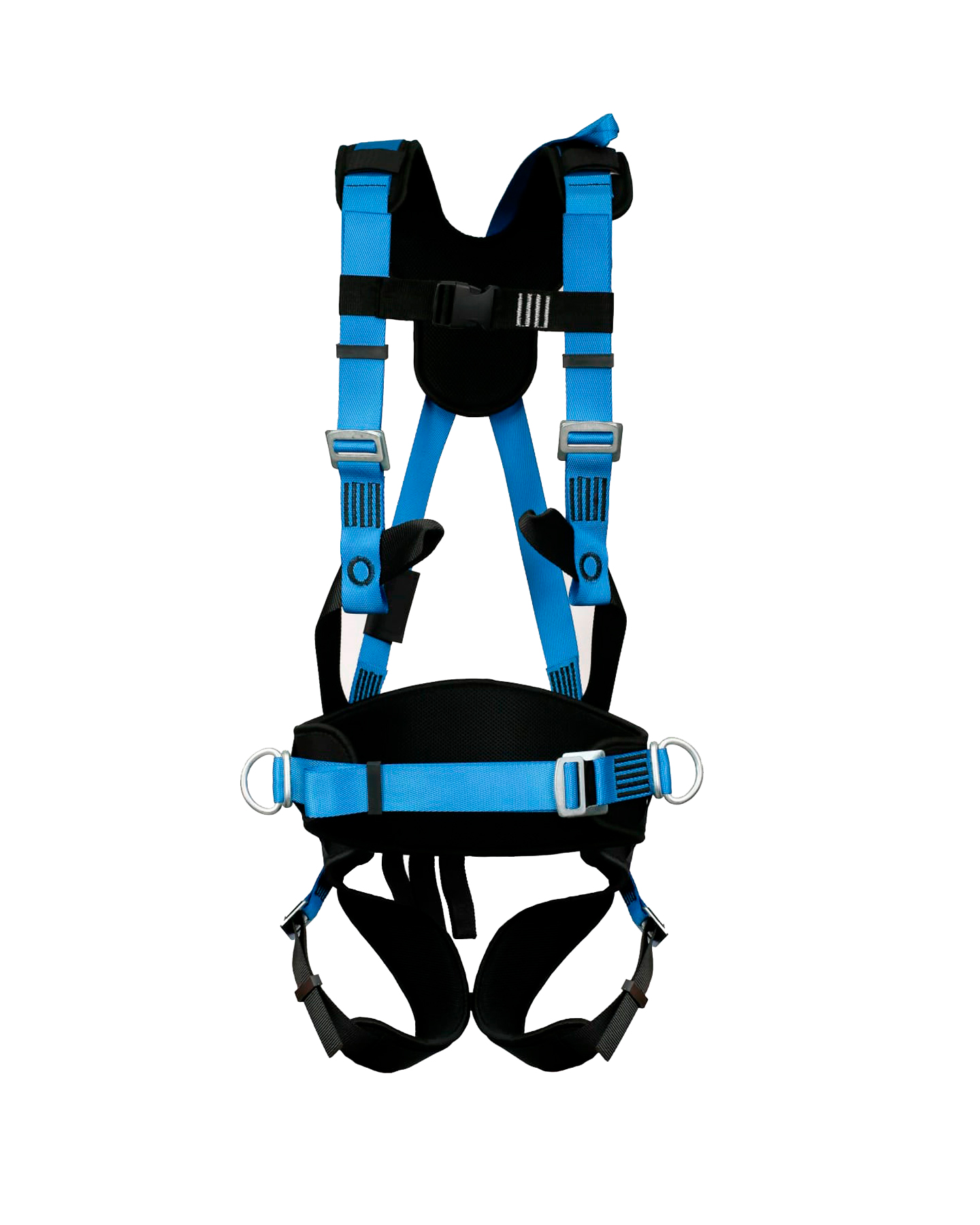 В составе привязи имеются высокий прошитый кушак с влагоотводящей сеткой, 2 боковые точки для удержания и позиционирования, анкерная точка на груди и точка крепления на спине, удлинитель страховочной точки для присоединения соединительно-амортизирующей системы и индикатор рывка.