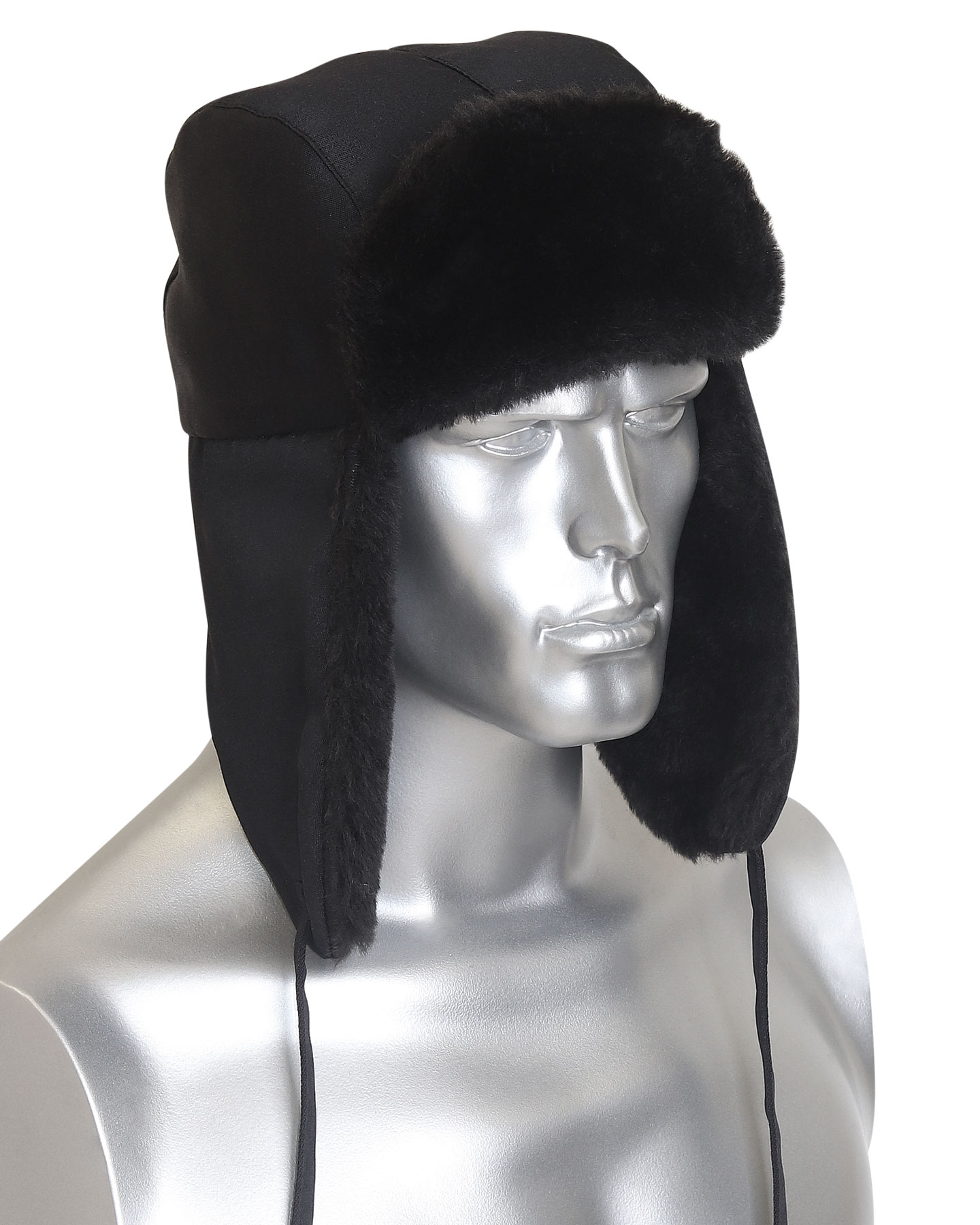 Шапка-ушанка ЛЮКС черная (тк. смесовая)