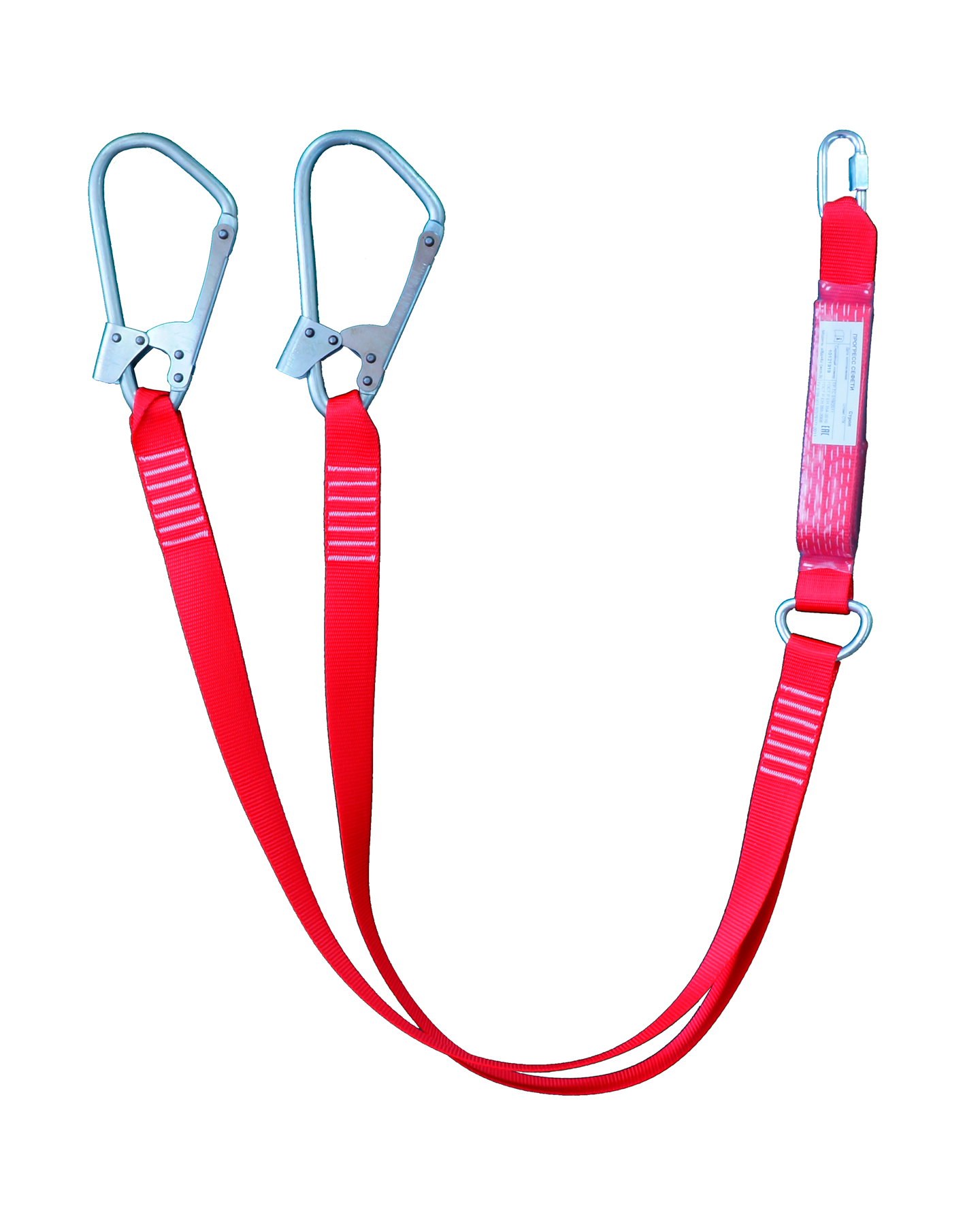 Строп аАд+Кс (исп.3) - страховочный двойной (двуплечий) строп из полиэфирной ленты с амортизатором, двумя большими монтажными и одним соединительным карабином.